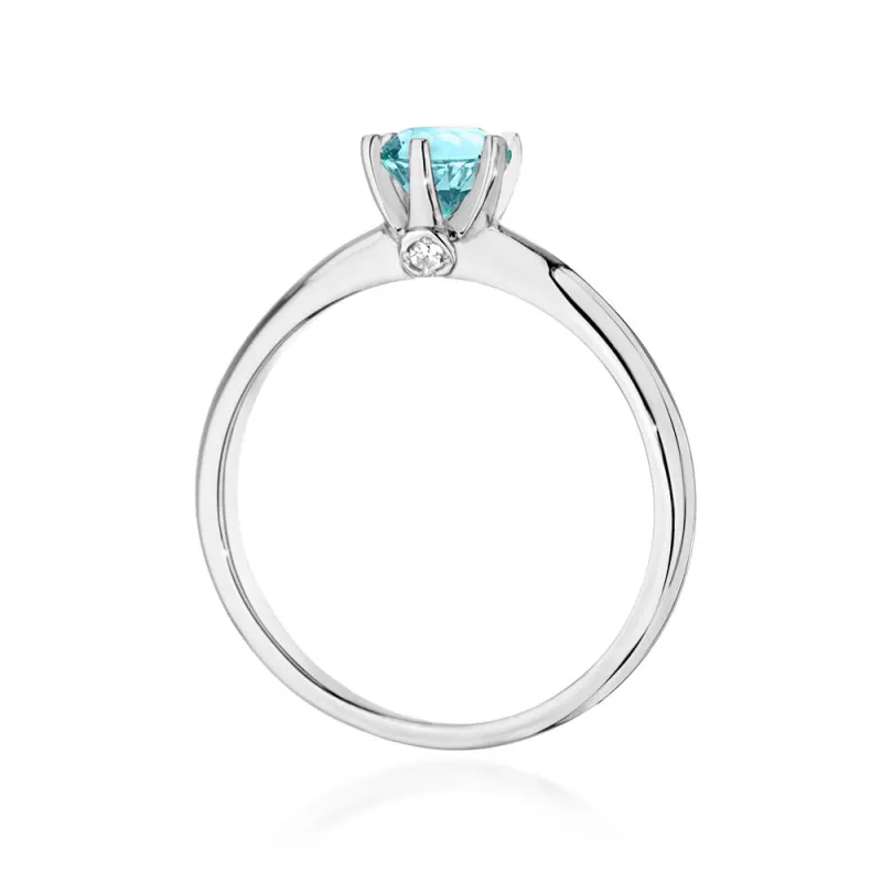 Pierścionek 14K Topaz Brylanty Białe Złoto Grawer (na zamówienie)
