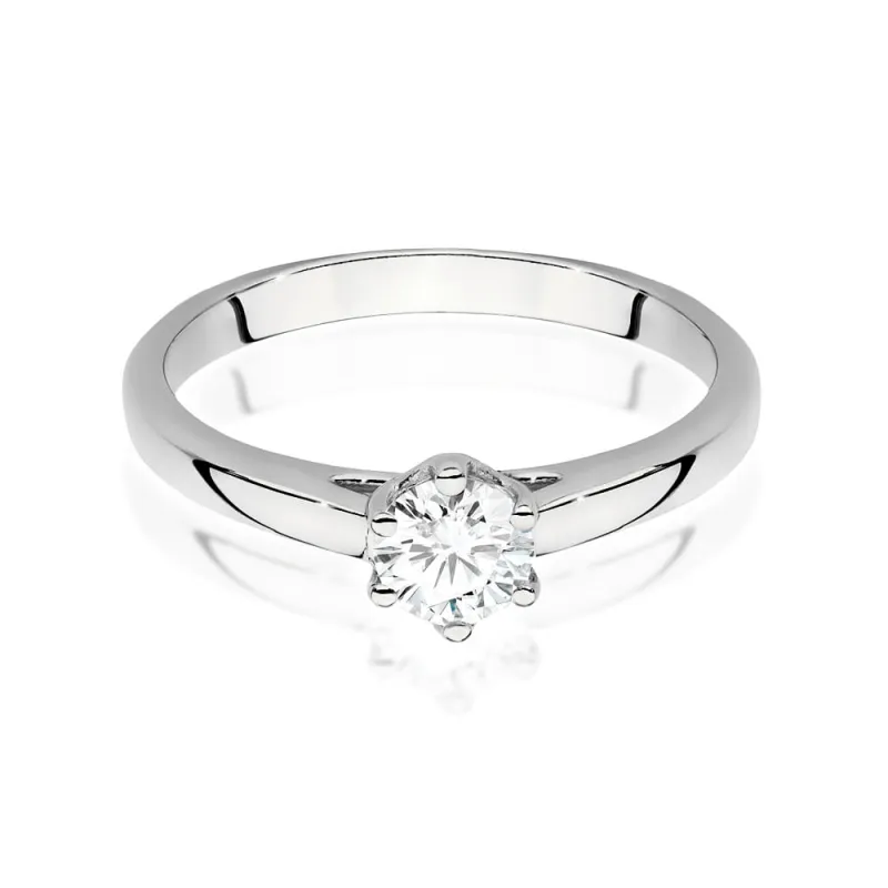 Pierścionek w Białym Złocie Diament 585 Grawer