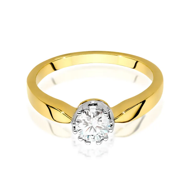 Złoty Zaręczynowy 14K Pierścionek Diament Grawer