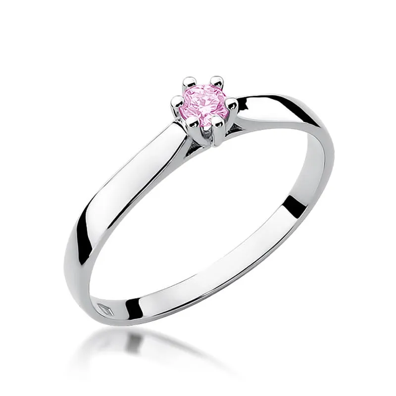 Pierścionek Białe Złoto Różowy Topaz pr 585 Grawer