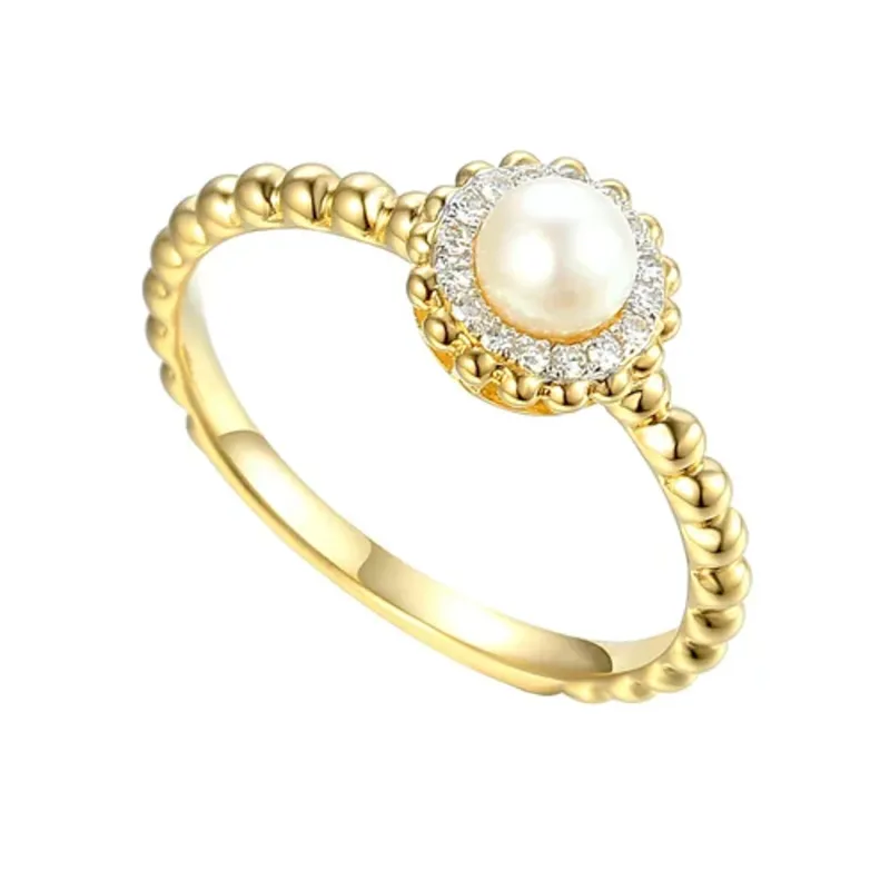 ZŁOTY 585 PIERŚCIONEK PERŁA DIAMENTY GRAWER