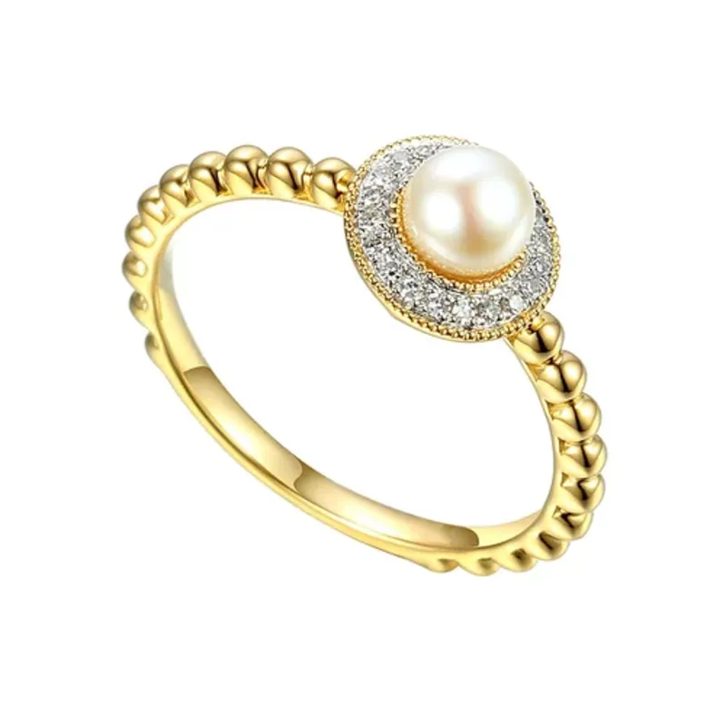 PIERŚCIONEK Z PERŁĄ I DIAMENTAMI pr 585 GRAWER