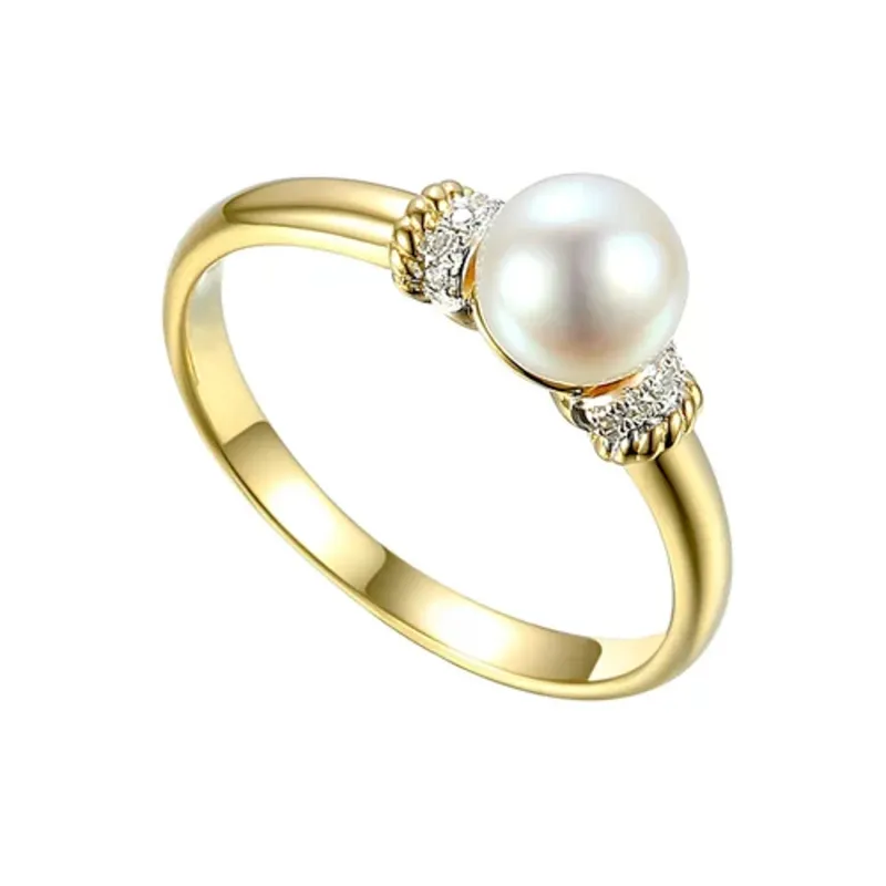 ZŁOTY 585 PIERŚCIONEK PERŁA DIAMENTY GRAWER