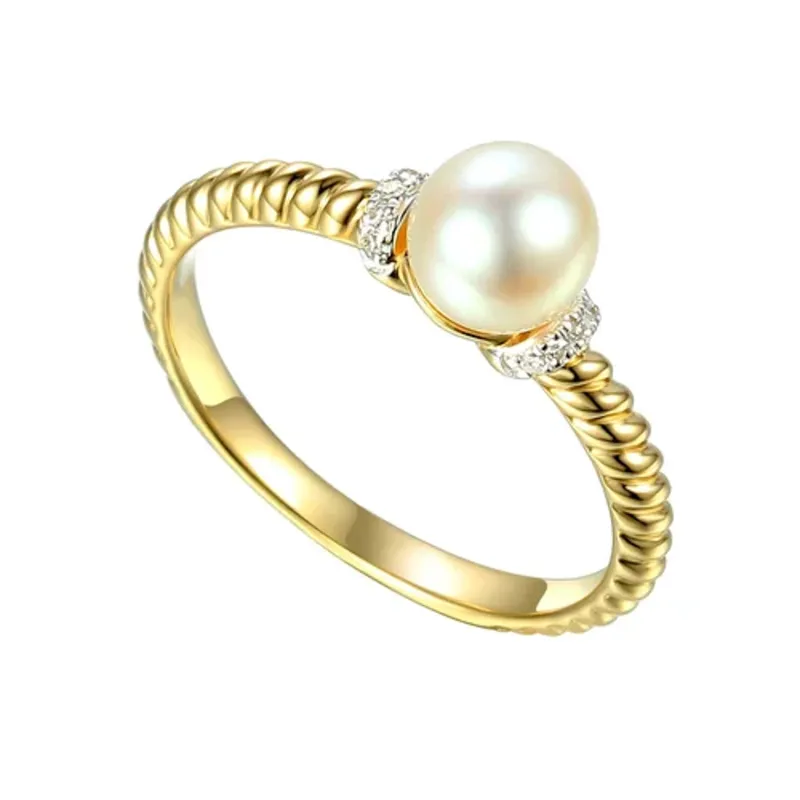 ZŁOTY PIERŚCIONEK PERŁA DIAMENTY GRAWER PRÓBA 585
