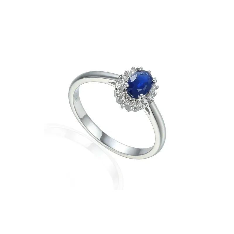 Pierścionek 585 Zaręczynowy Szafir Diamenty Grawer ( NA ZAMÓWIENIE )