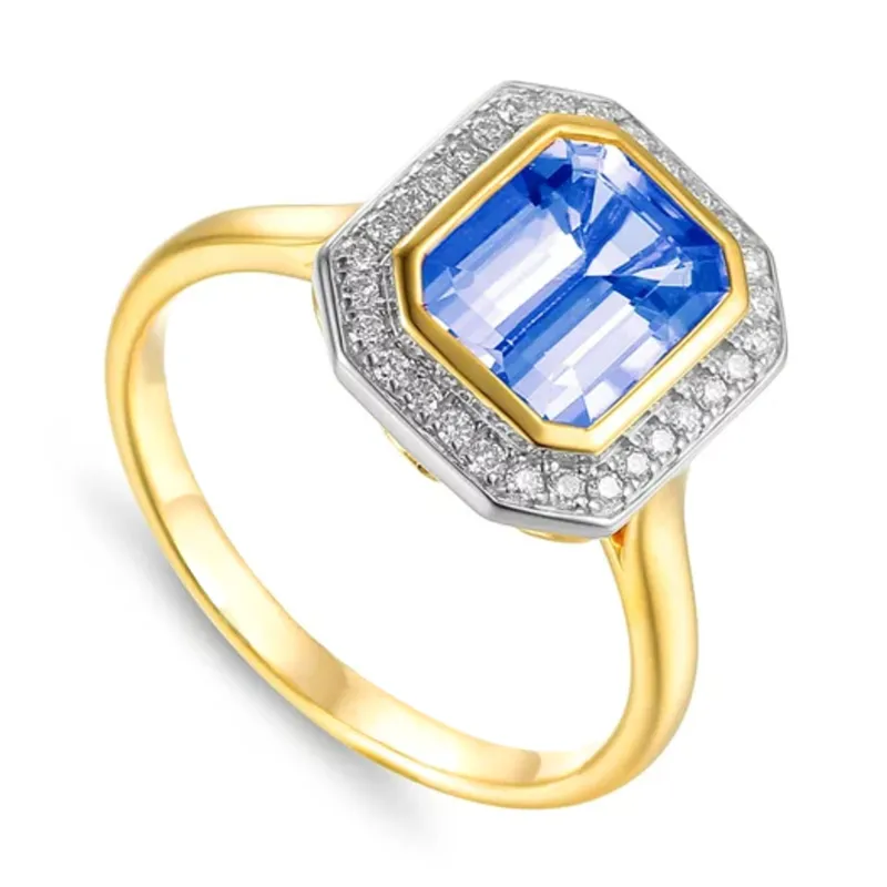 ZŁOTY 14K PIERŚCIONEK TANZANIT DIAMENTY GRAWER ( NA ZAMÓWIENIE )