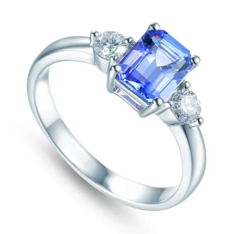 Pierścionek Tanzanit Diamenty Białe Złoto pr 585