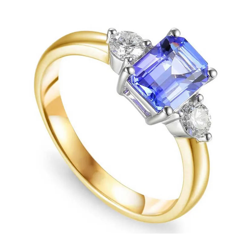 Złoty 14K Pierścionek Tanzanit Diamenty Grawer ( NA ZAMÓWIENIE )