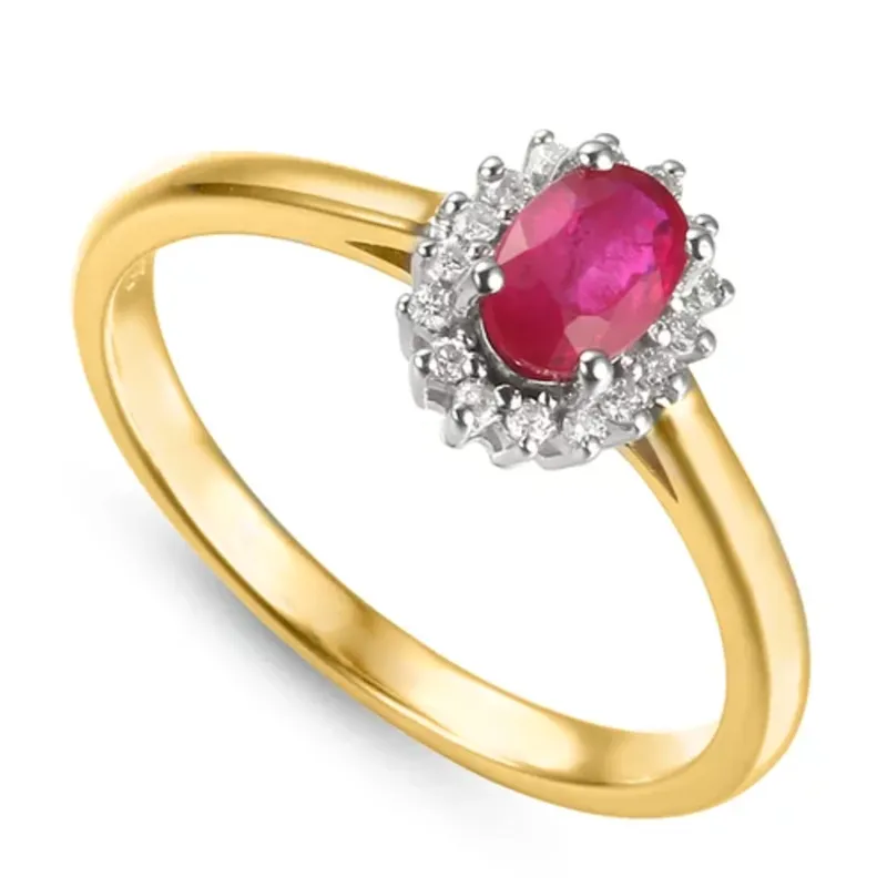 Złoty Pierścionek Rubin Diamenty Żółto Białe Złoto