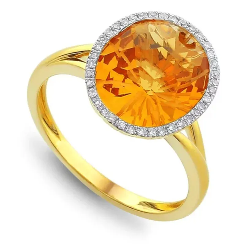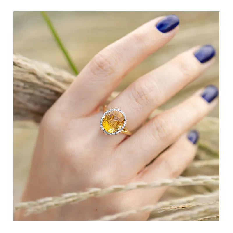 PIERŚCIONEK CYTRYN DIAMENTY PRÓBA 585 GRAWER