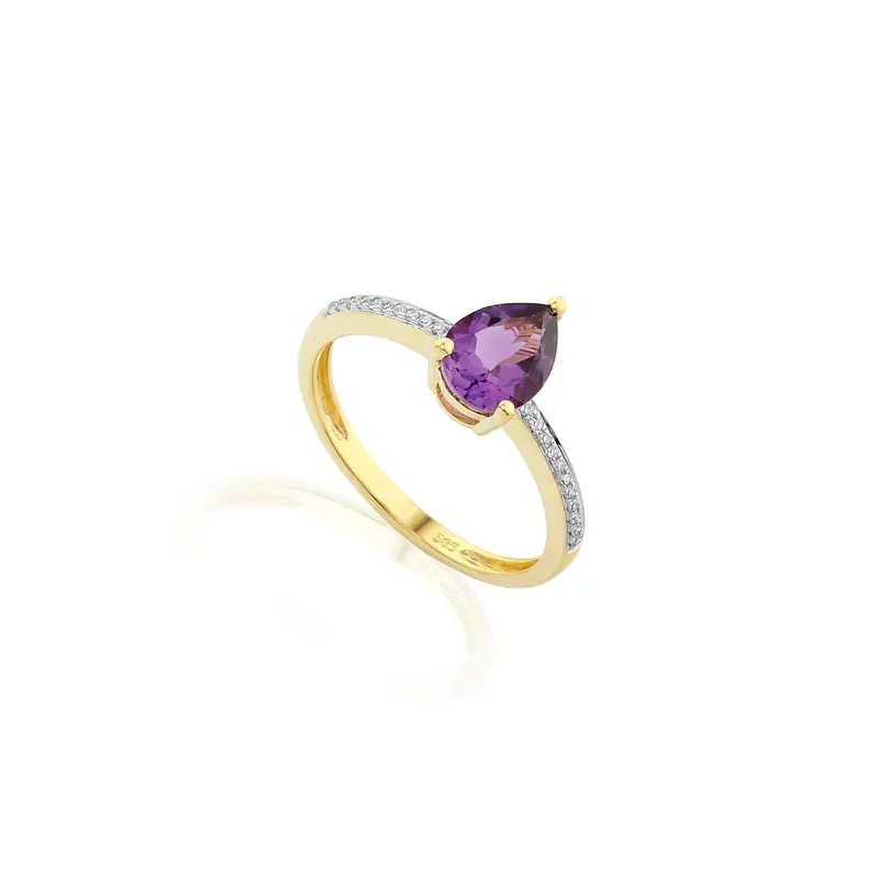 ZŁOTY 585 PIERŚCIONEK AMETYST DIAMENTY GRAWER