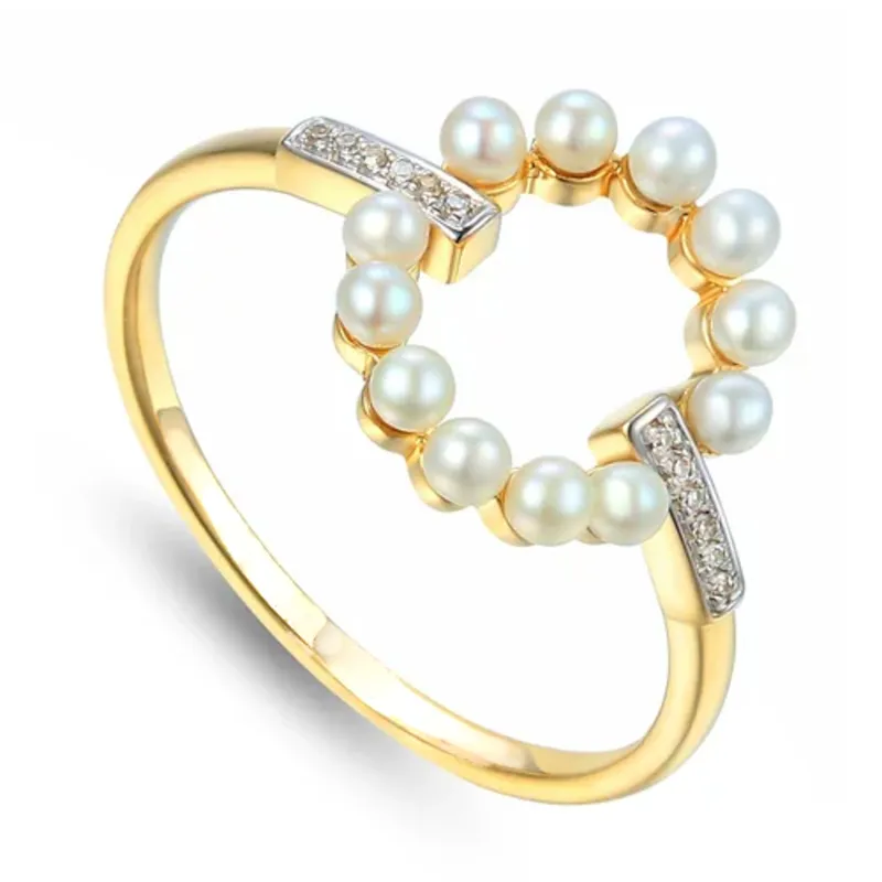 Złoty Pierścionek Perła i Diamenty
