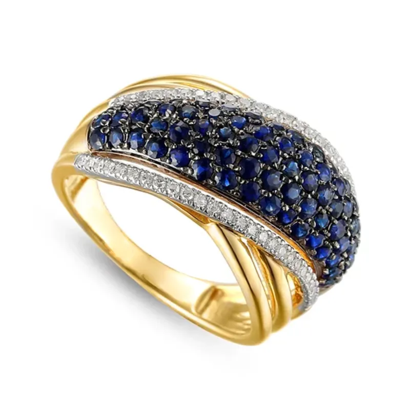 Złoty 585 Pierścionek Szafir i Diamenty Grawer