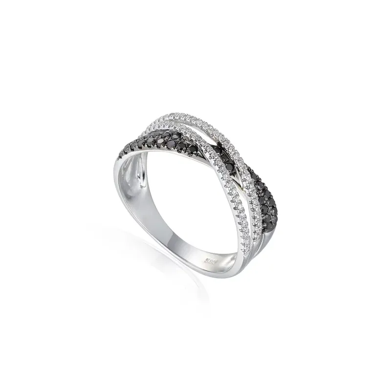 Pierścionek 585 Czarne Białe Brylanty Białe Złoto