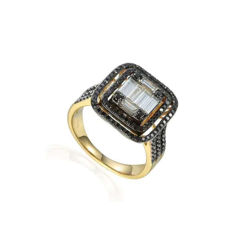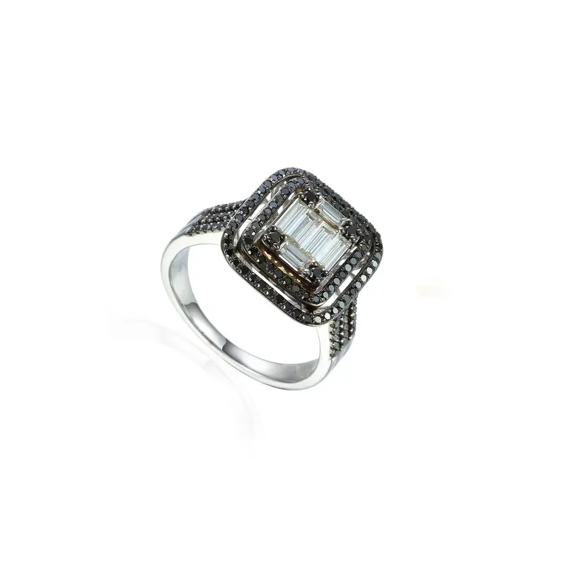 Pierścionek 585 Białe Czarne Diamenty Białe Złoto