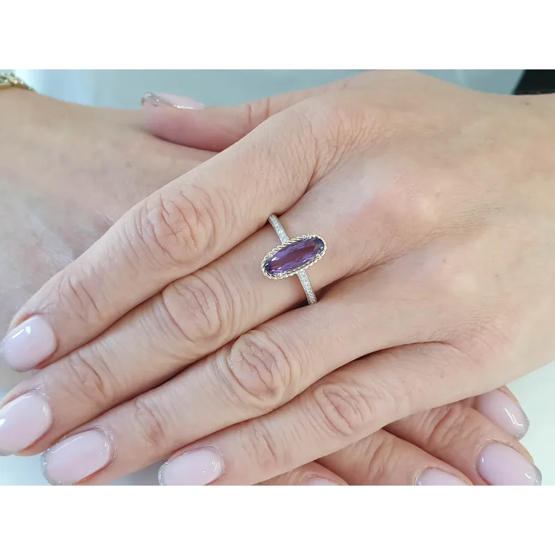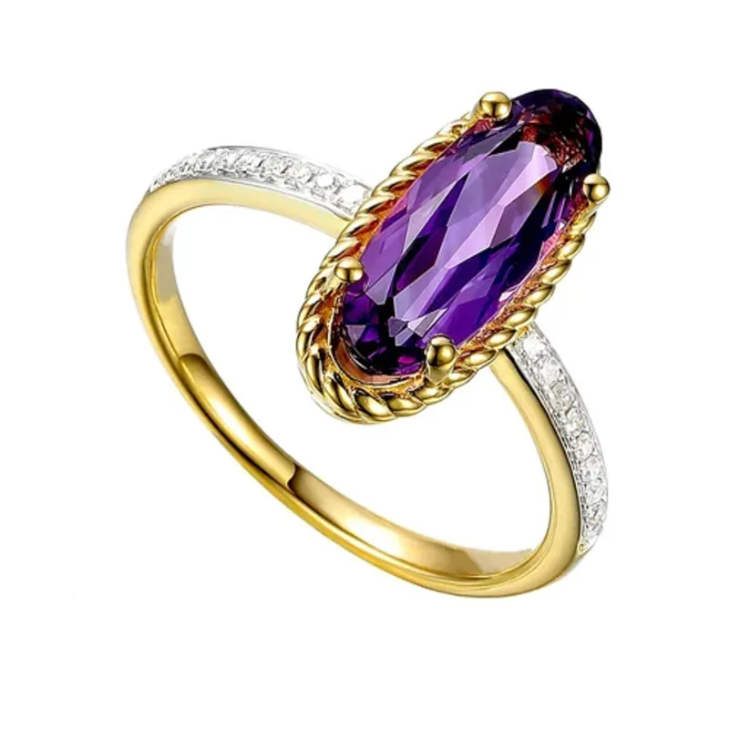 Złoty 585 Pierścionek Ametyst i Diamenty Grawer