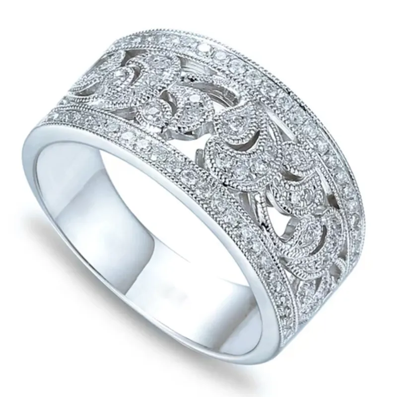 Modny 585 Pierścionek Diamenty Białe Złoto Grawer
