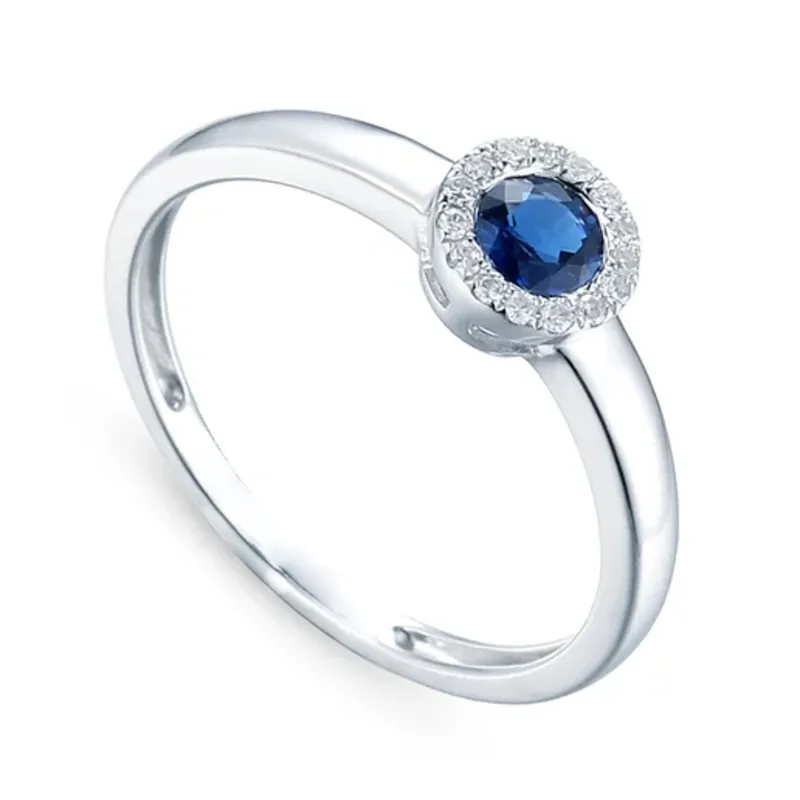 Złoty Pierścionek Szafir Diamenty Białe Złoto ( NA ZAMÓWIENIE )
