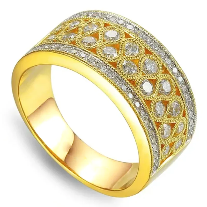 Złoty Modny Pierścionek Diamenty pr 585 Grawer