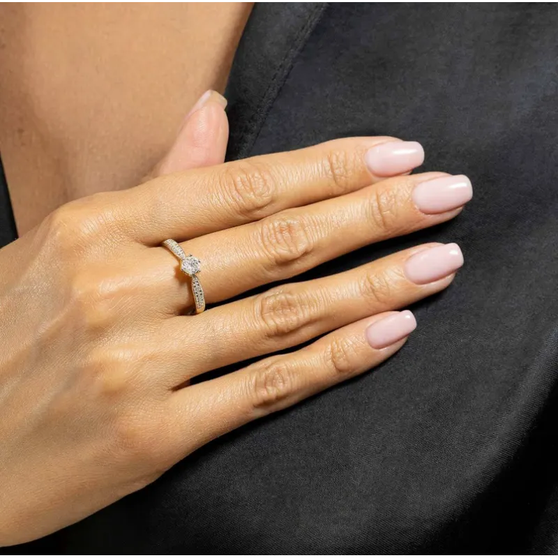 Złoty Pierścionek z Diamentami Próba 585 Grawer