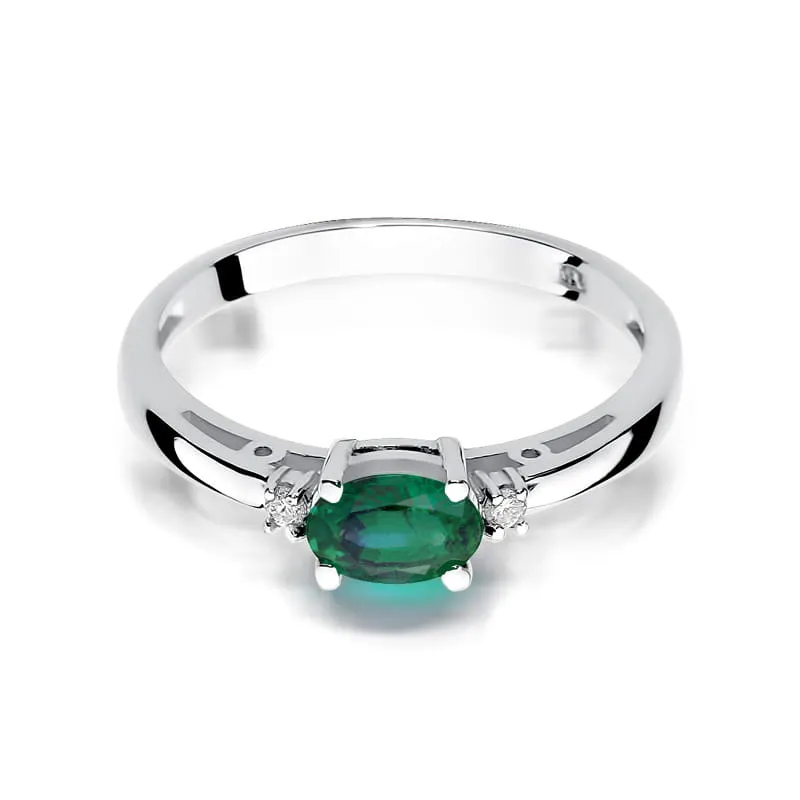 Pierścionek pr 585 Szmaragd Diamenty Białe Złoto