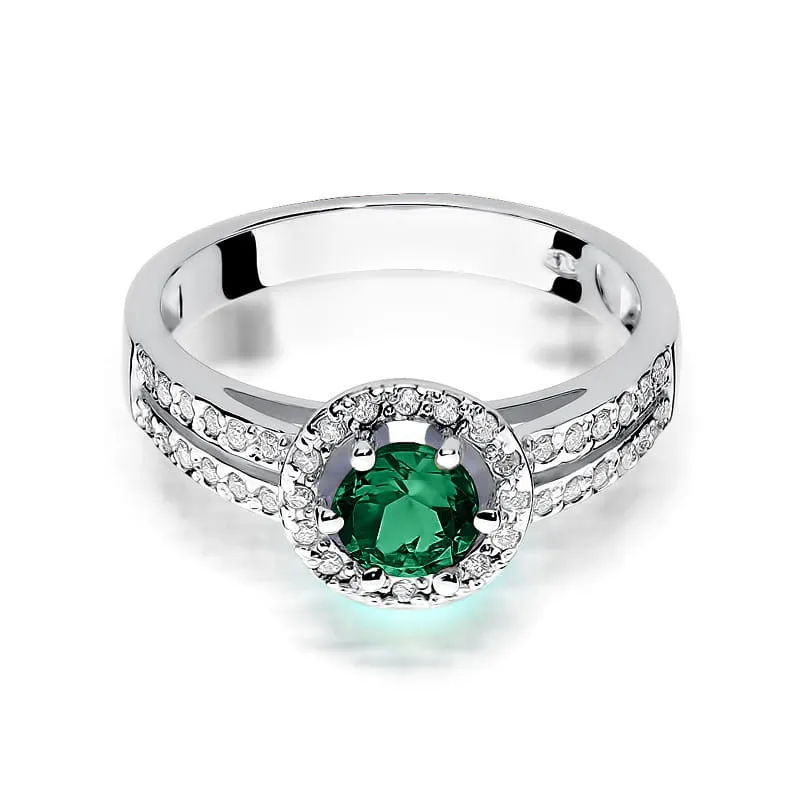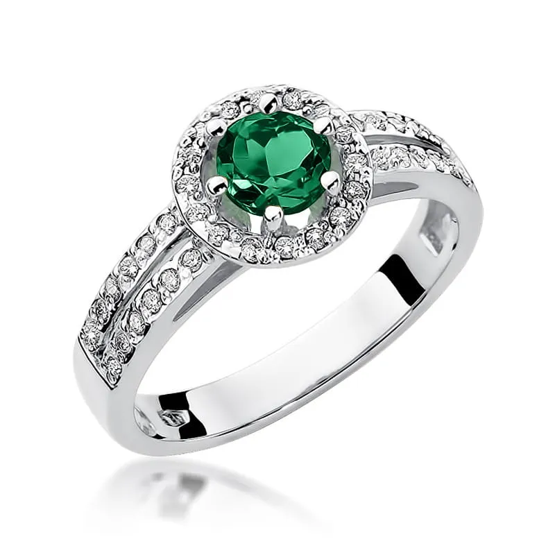 Złoty 14K Pierścionek Szmaragd Diamenty Grawer