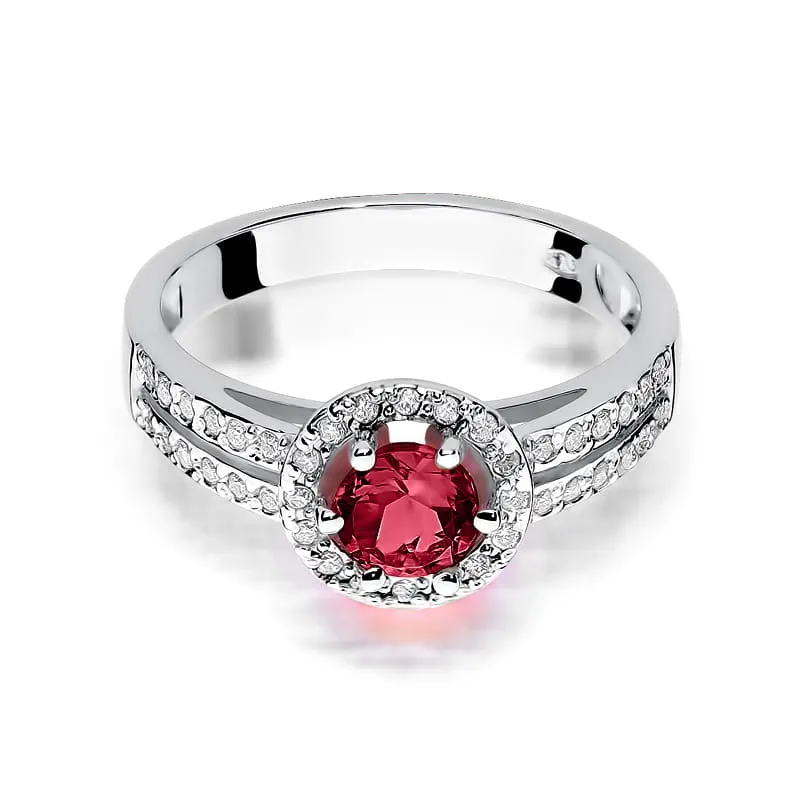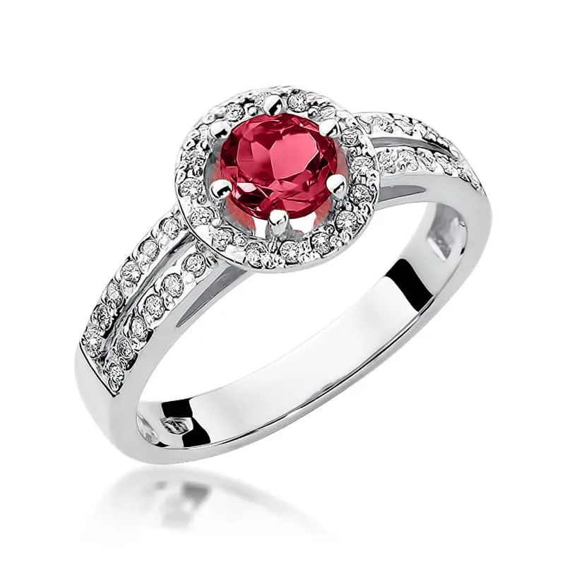 Pierścionek Rubin Diamenty Białe Złoto Próba 585