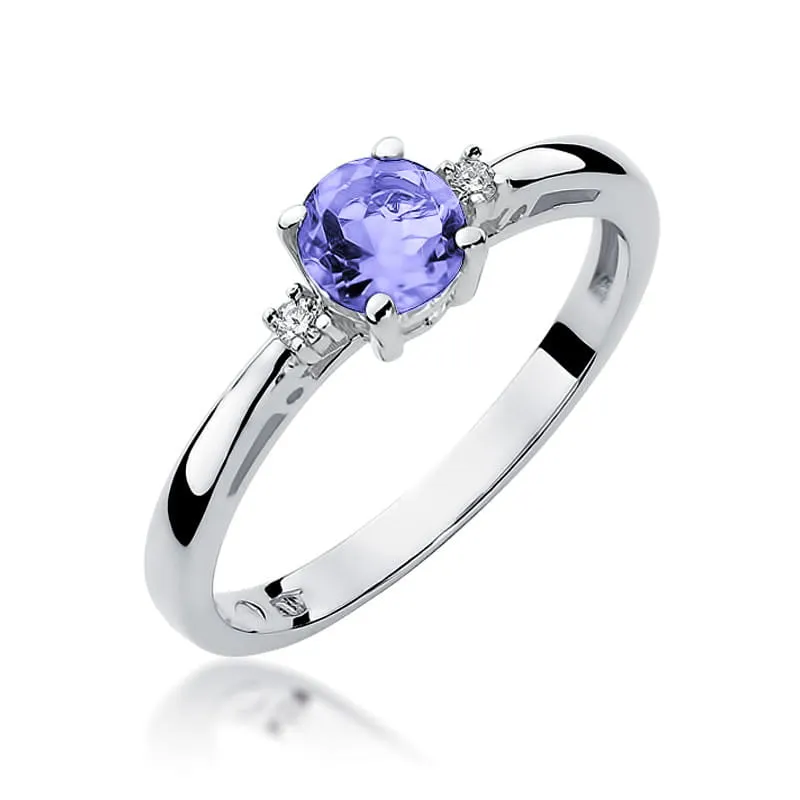 Pierścionek Tanzanit Diamenty Białe Złoto pr 585
