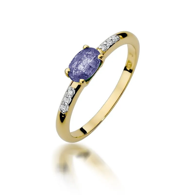 Złoty 14K Pierścionek Tanzanit Diamenty Grawer