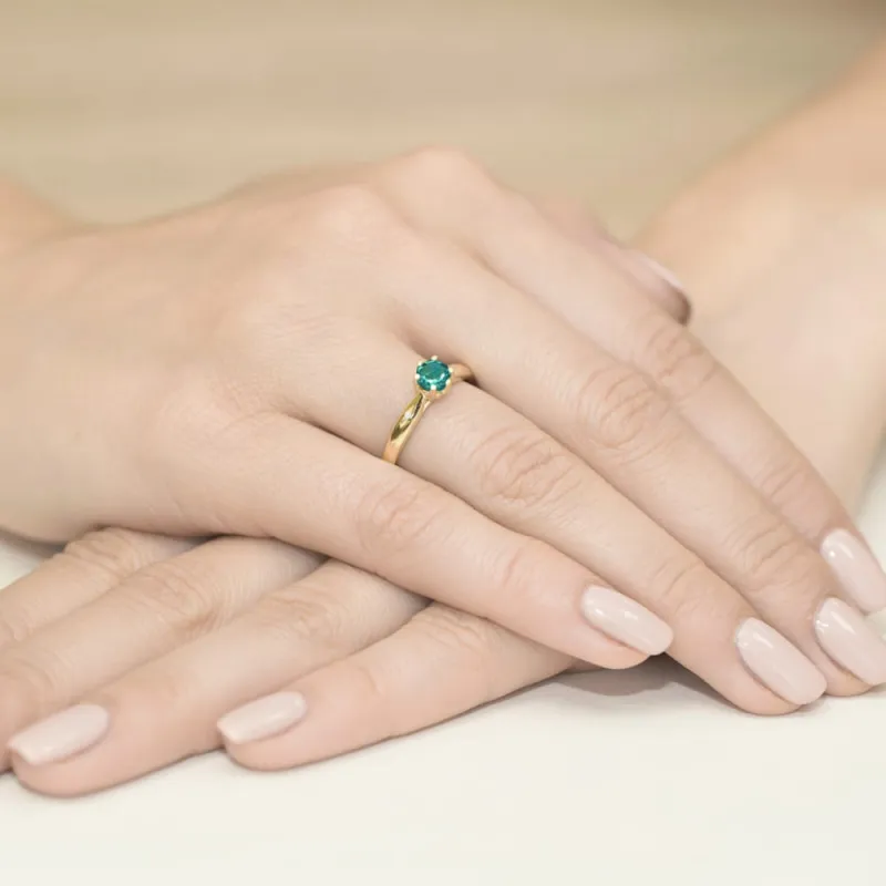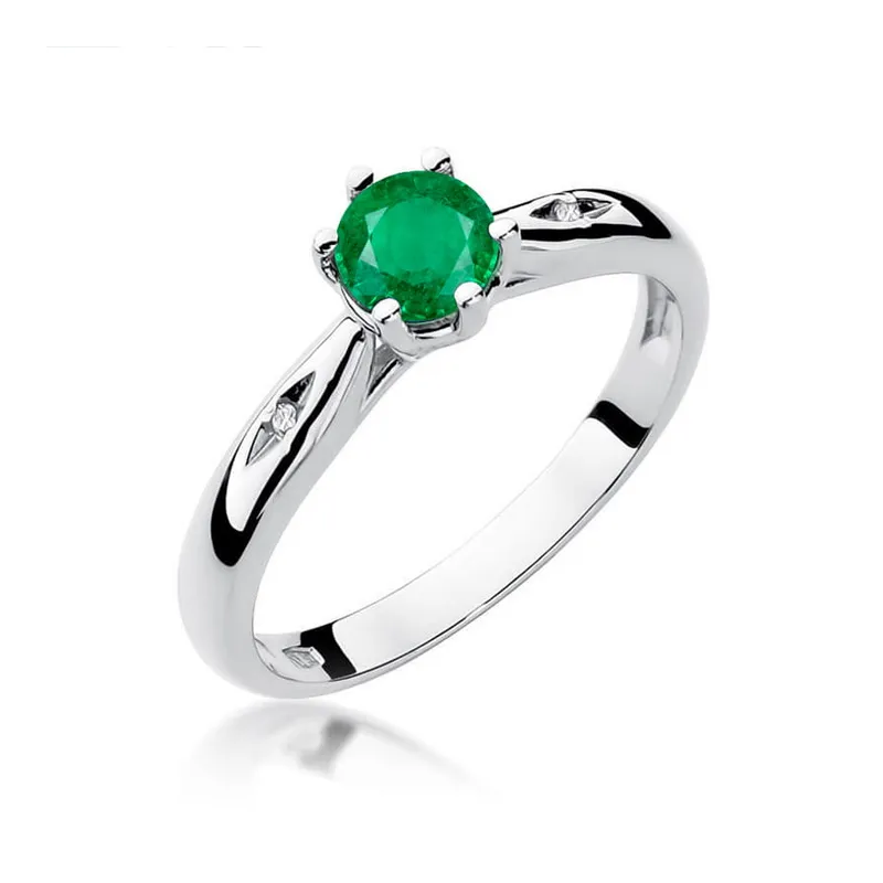 Pierścionek 585 w Białym Złocie Szmaragd Diamenty