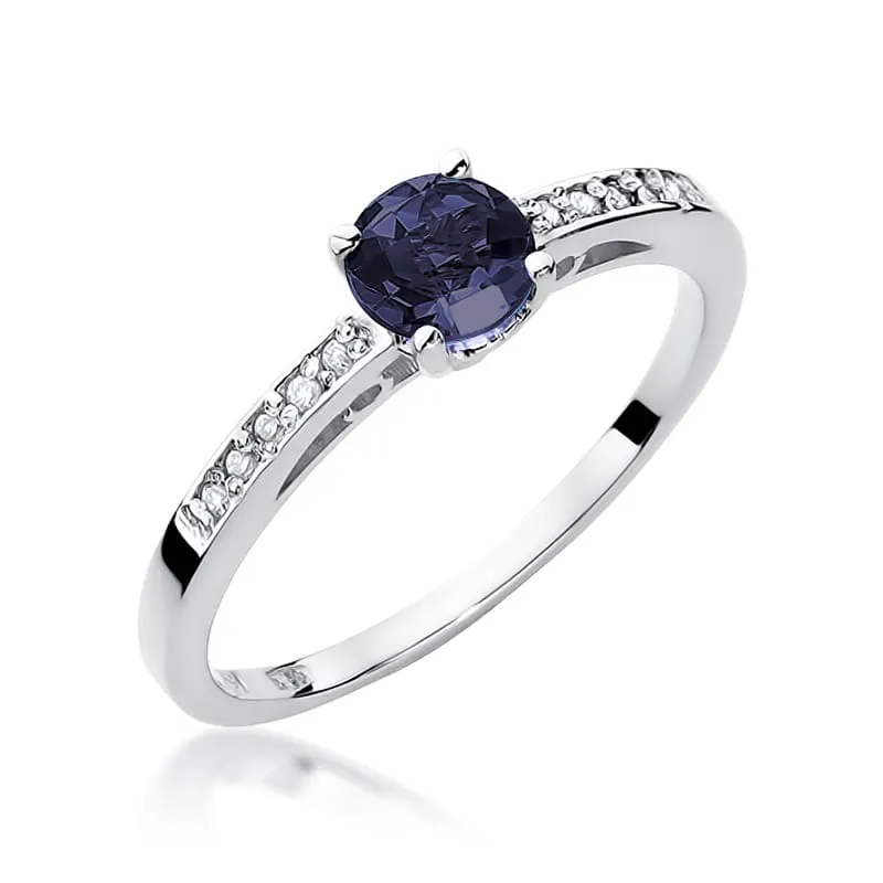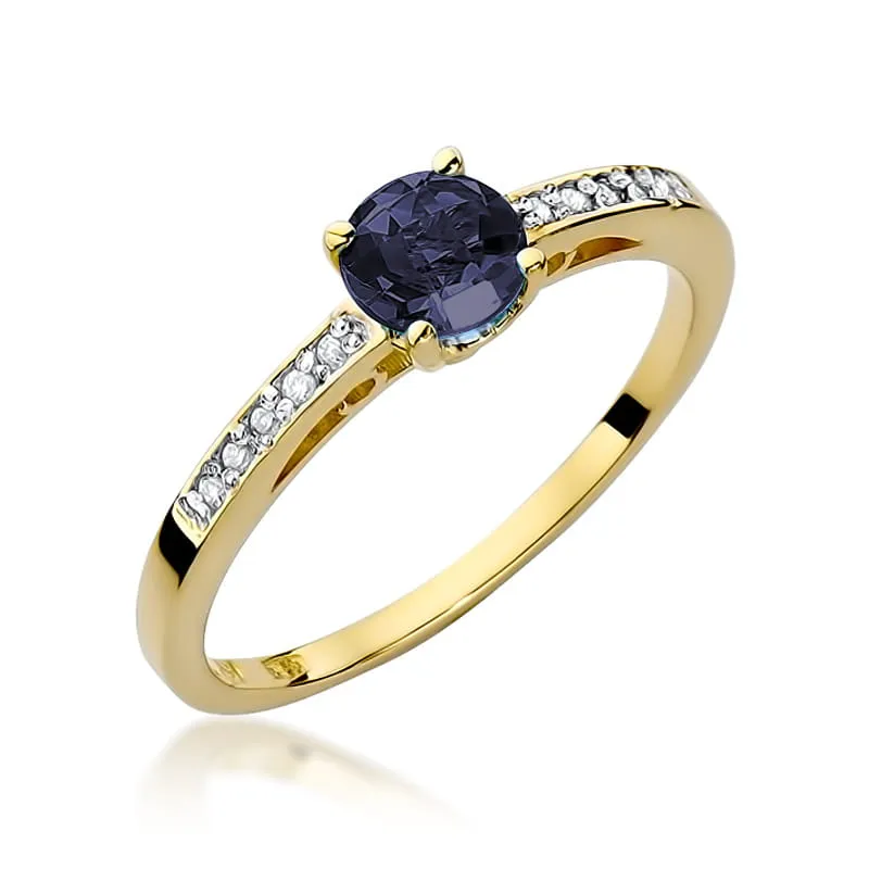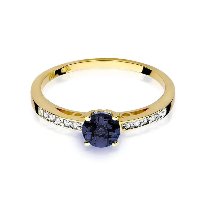 Złoty 14K Zaręczynowy Pierścionek Szafir Diamenty