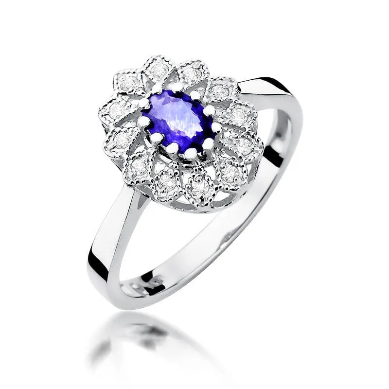 Pierścionek 585 Tanzanit Diamenty Białe Złoto
