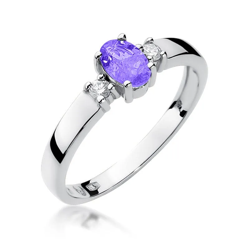 Złoty 14K Pierścionek Tanzanit Brylanty Grawer