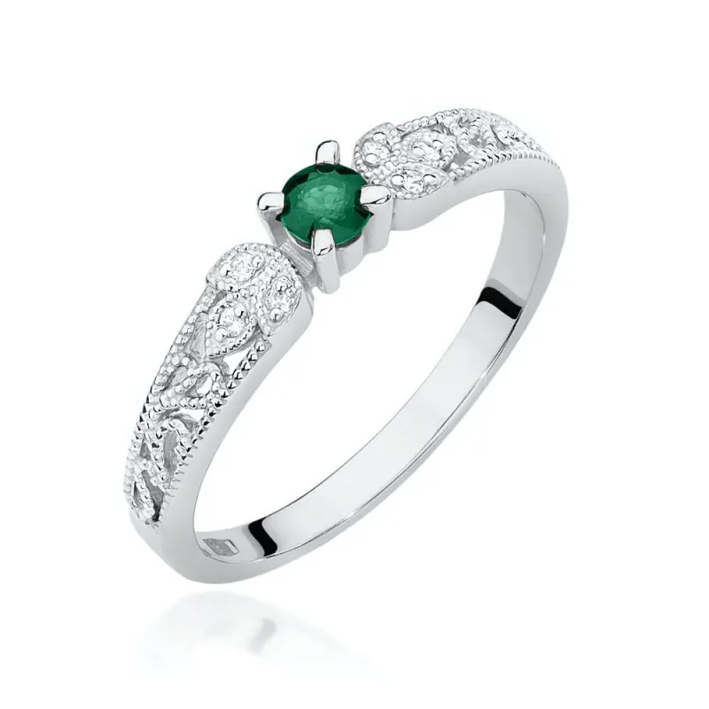 Zaręczynowy 14K Pierścionek Szmaragd Brylanty