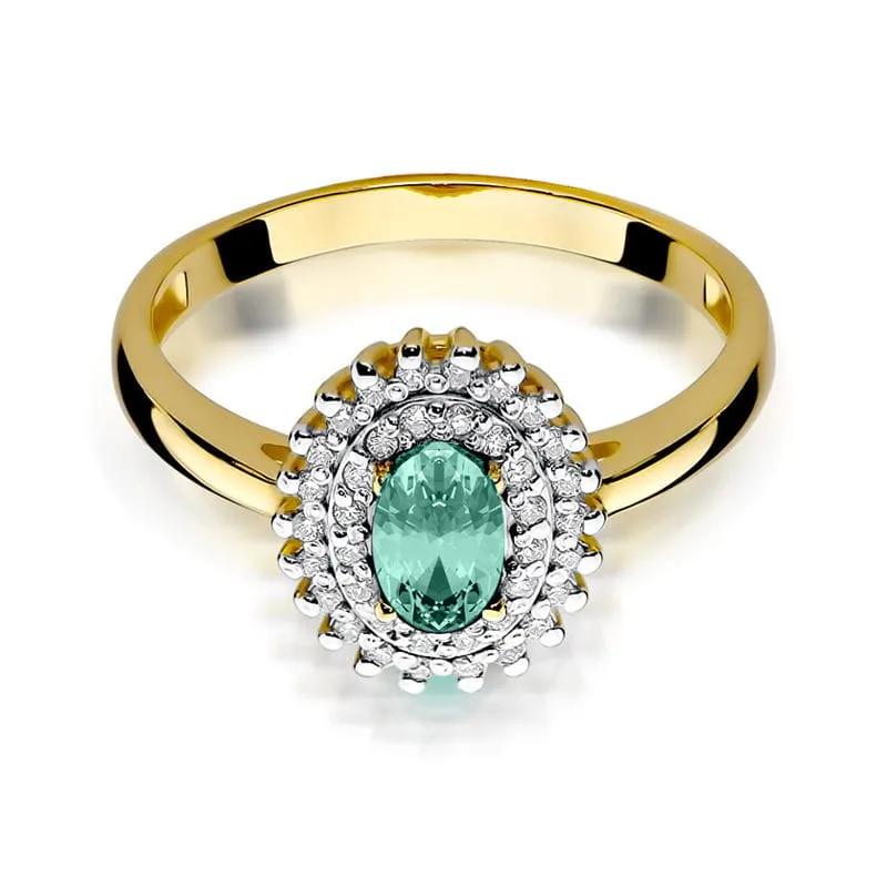 Złoty 14K Pierścionek ze Szmaragdem i Brylantami