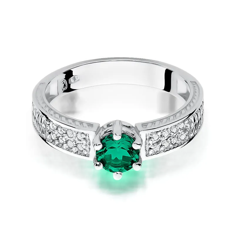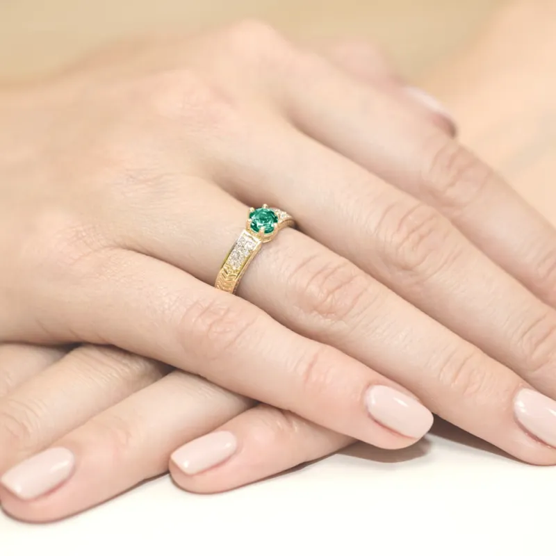 Złoty 585 Pierścionek Szmaragd Brylanty Grawer
