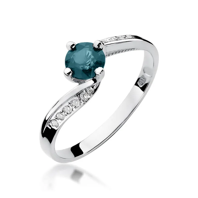 Pierścionek 14K Szmaragd Brylanty Białe Złoto