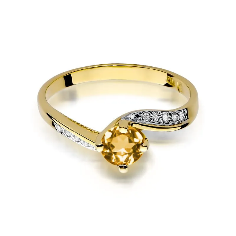 Pierścionek Cytryn i Brylanty Próba 585 Grawer