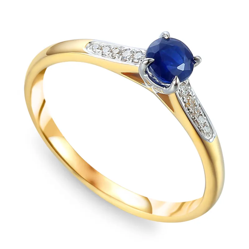 Zaręczynowy Pierścionek Szafir Diamenty Próba 585