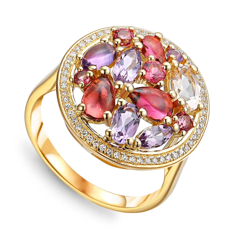 ZŁOTY PIERŚCIONEK MORGANIT AMETYST BRYLANTY pr 585