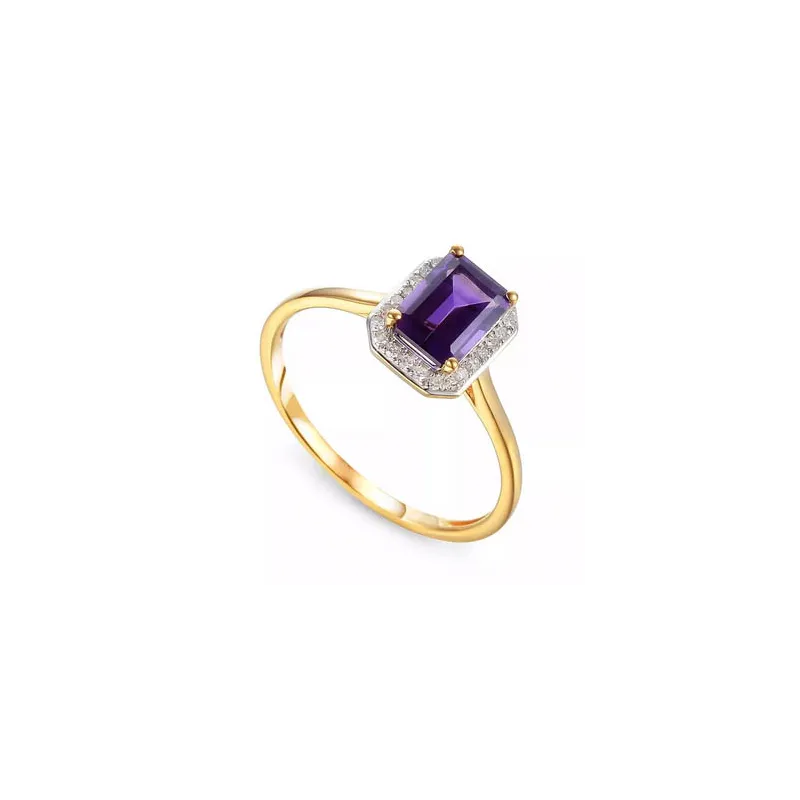 ZŁOTY 14K PIERŚCIONEK AMETYST DIAMENTY GRAWER