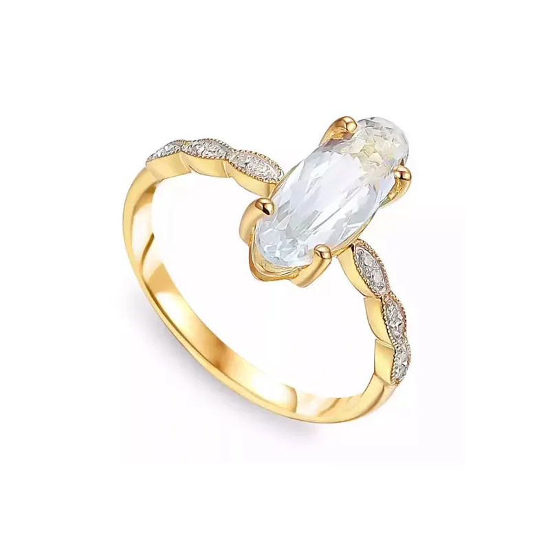 Złoty Pierścionek Biały Topaz Brylanty Próba 585