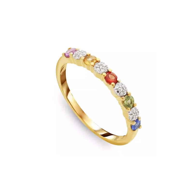 Pierścionek 585 Kolorowe Szafiry Diamenty Prezent