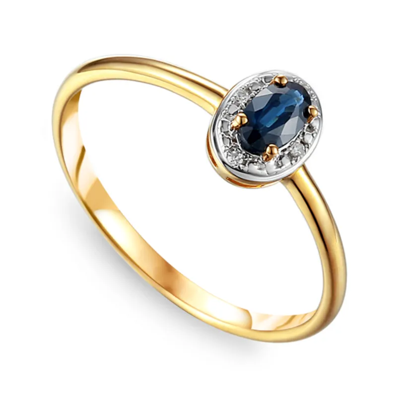 Złoty 585 Pierścionek Szafir Diamenty na Prezent (Na Zamówienie)