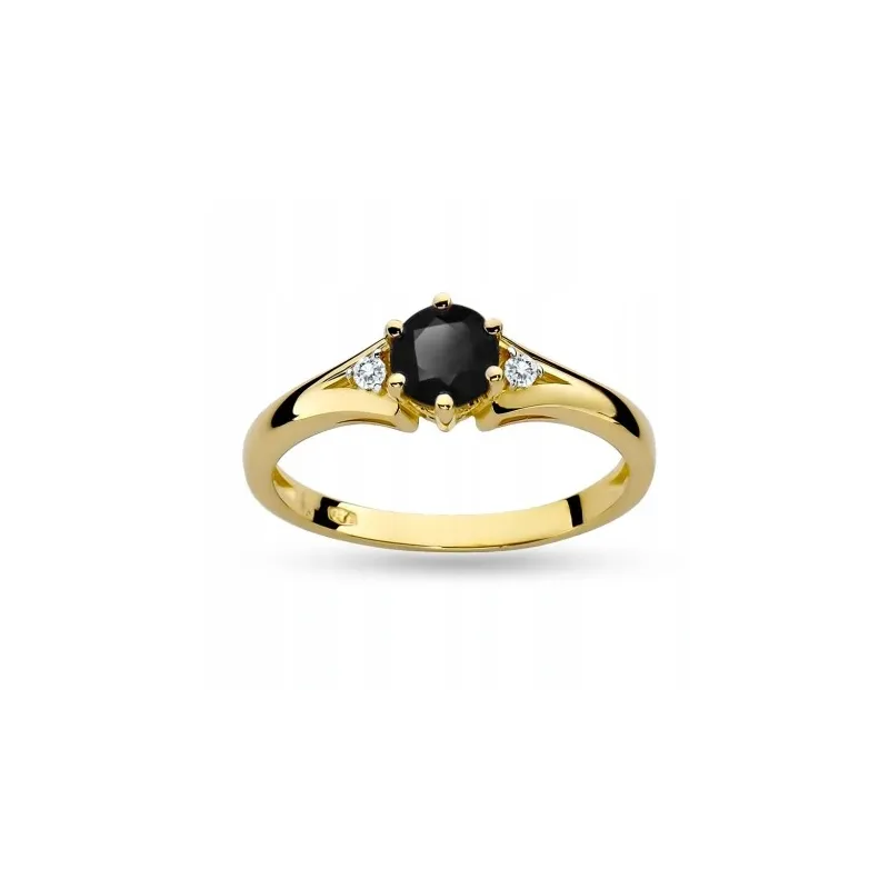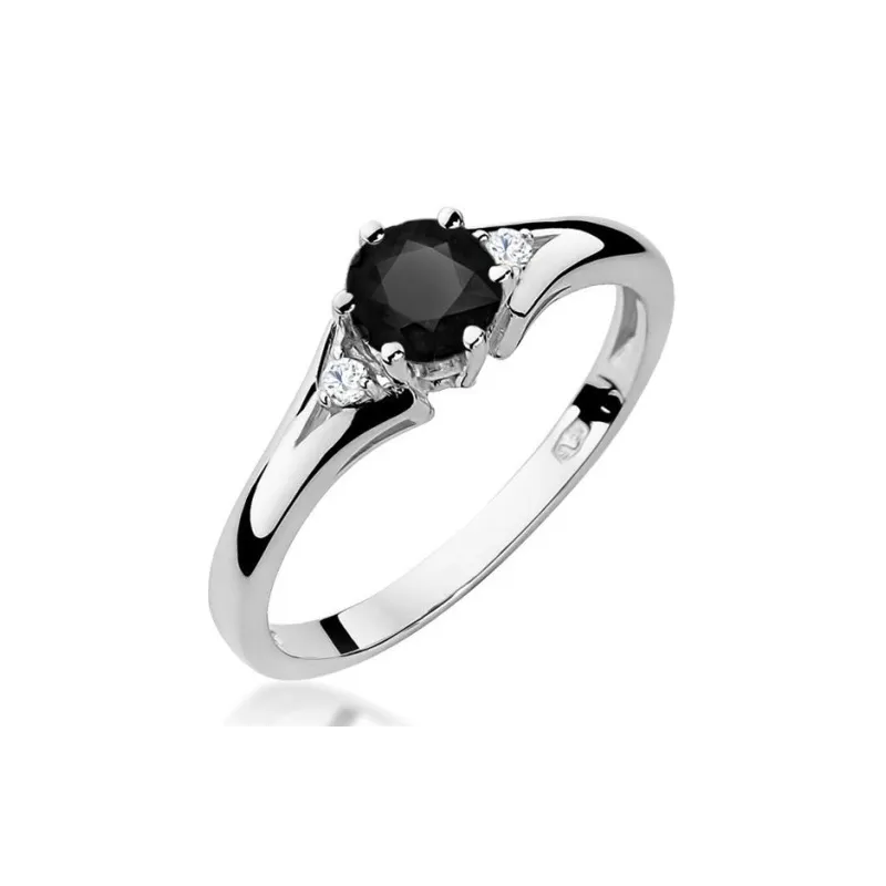 Pierścionek 585 Czarny Białe Diamenty Białe Złoto