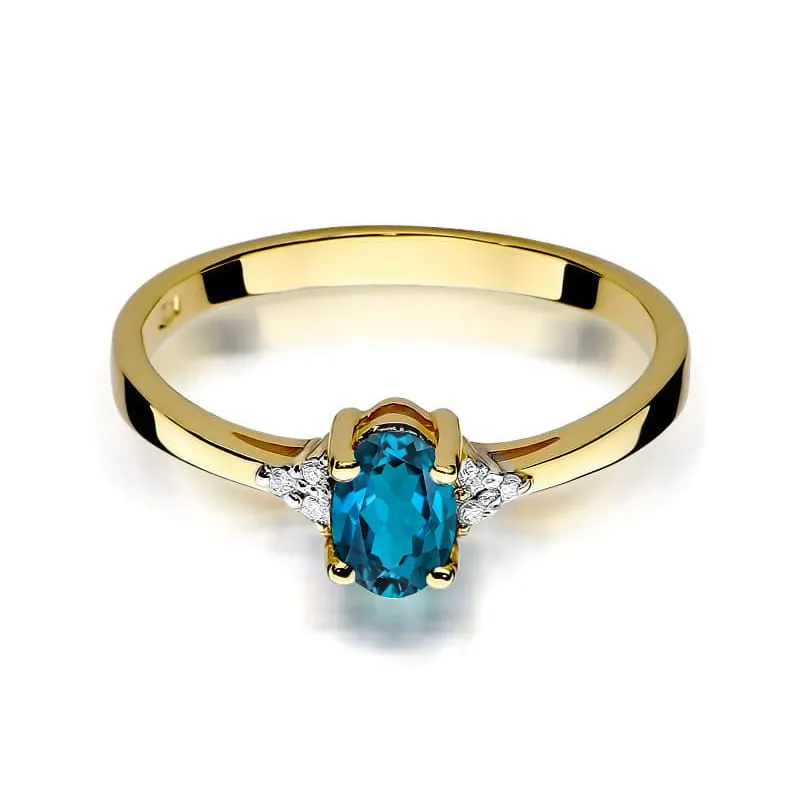 Złoty Pierścionek Topaz London Blue Brylant pr 585