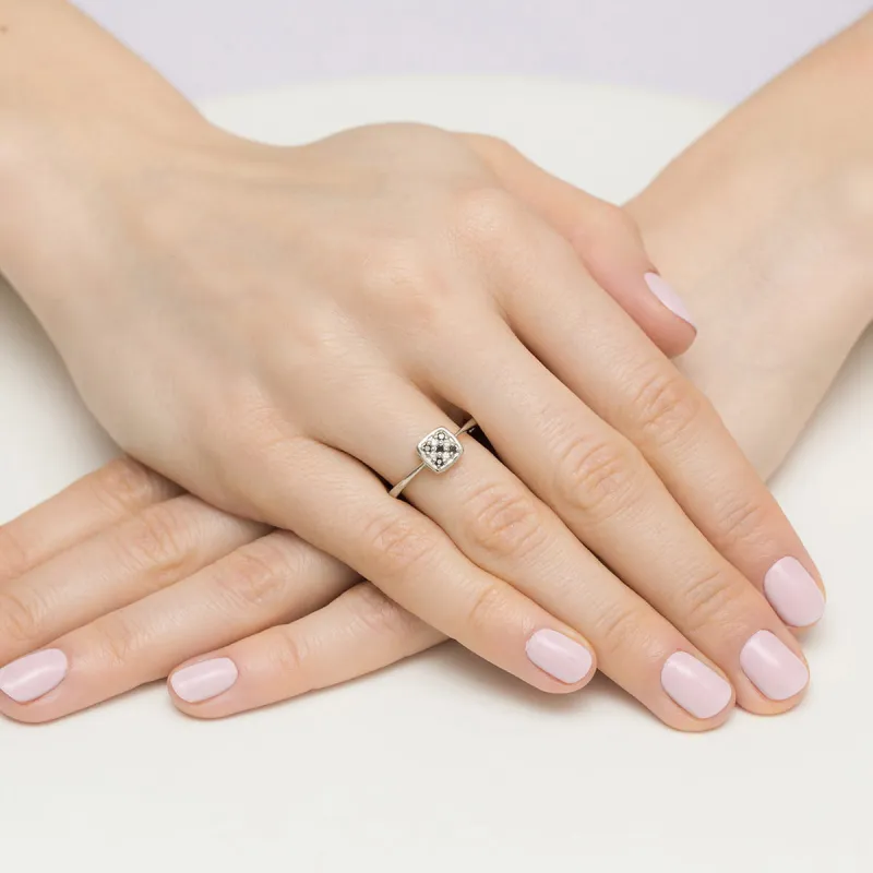 Złoty 14K Pierścionek Czarne Białe Brylanty Grawer (na zamówienie)