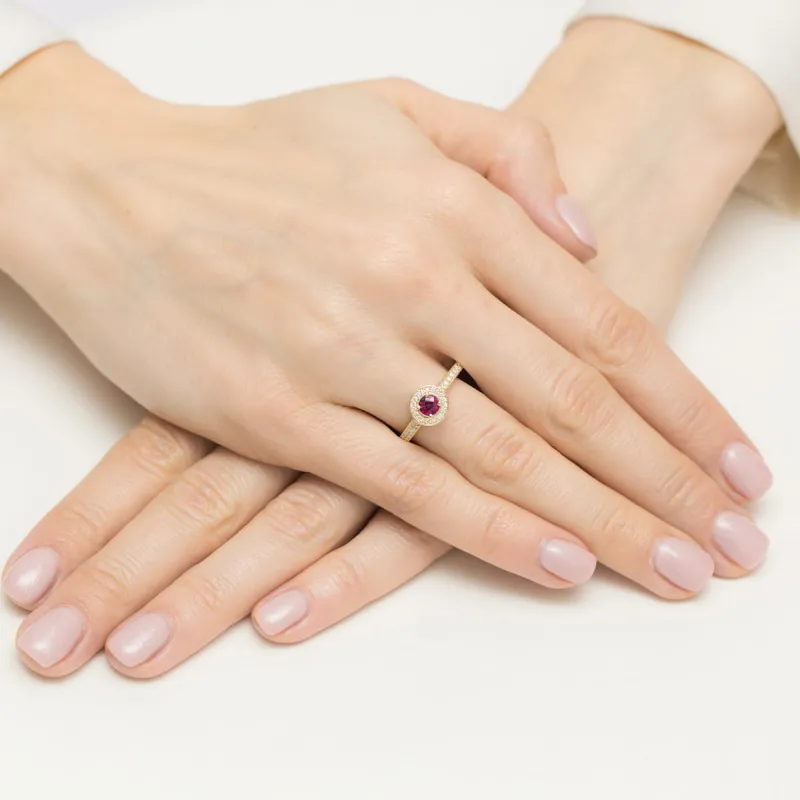 Złoty 14K Zaręczynowy Pierścionek Rubin Diamenty