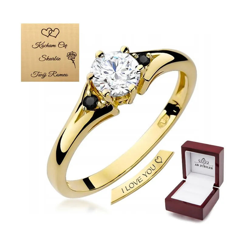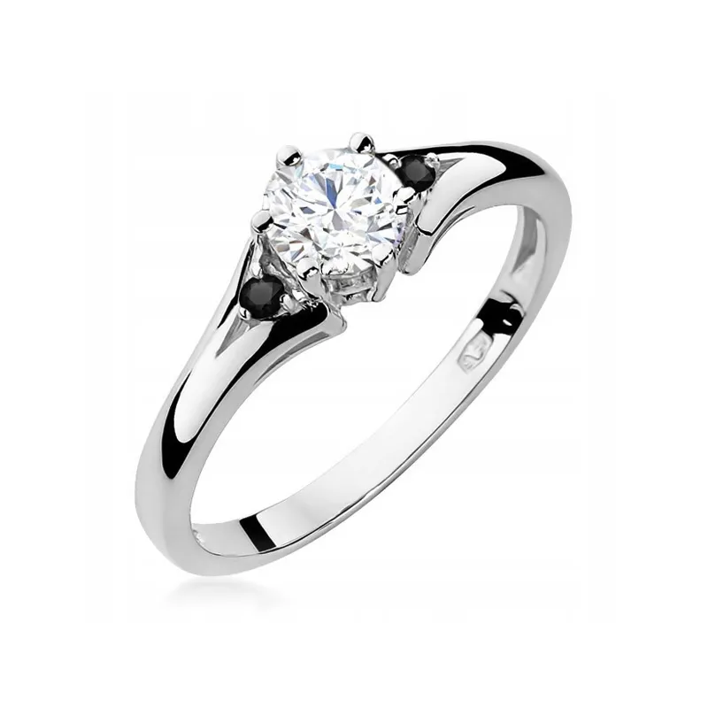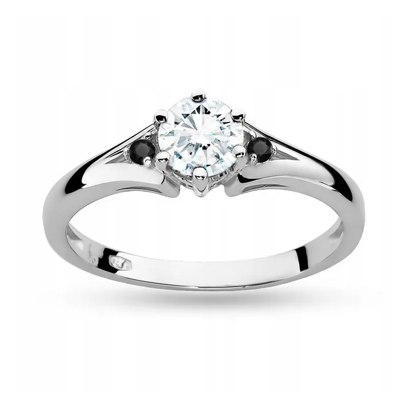 Pierścionek Biały Szafir Czarne Brylanty Próba 585
