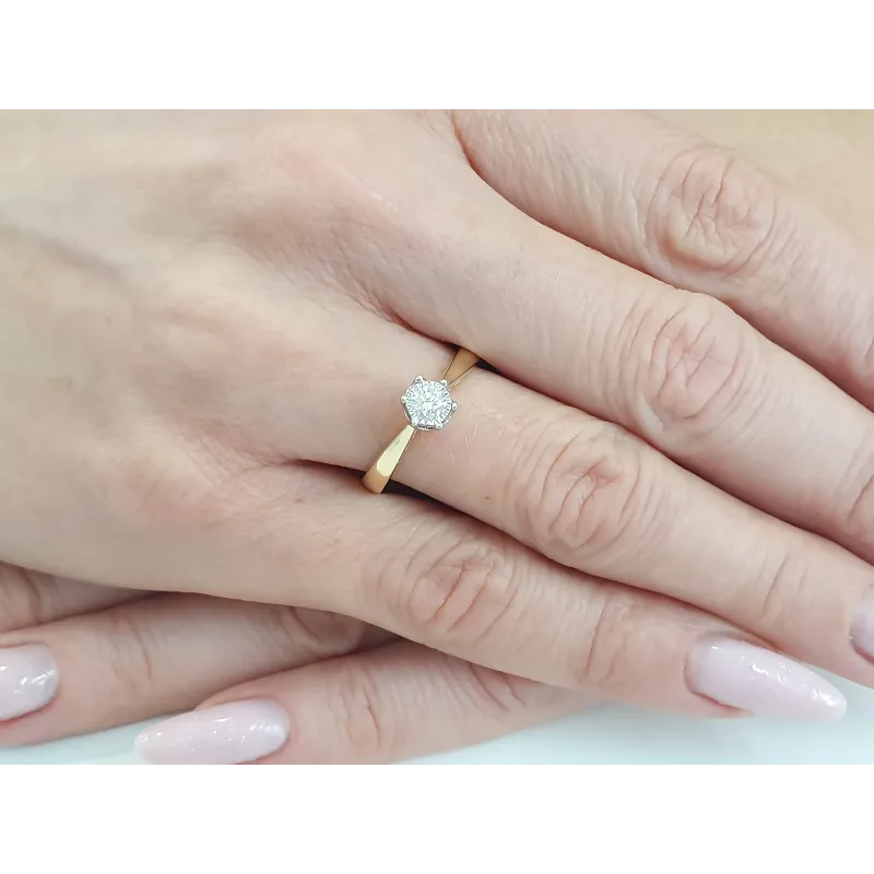 ZŁOTY 585 PIERŚCIONEK ZARĘCZYNOWY BRYLANT 0.23ct